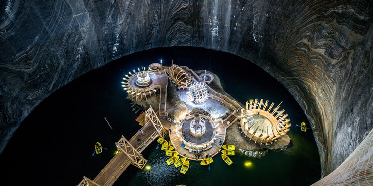 ▼羅馬尼亞,真的有人居住的「圖爾達鹽礦深坑博物館」(Turda Salt Mines)。