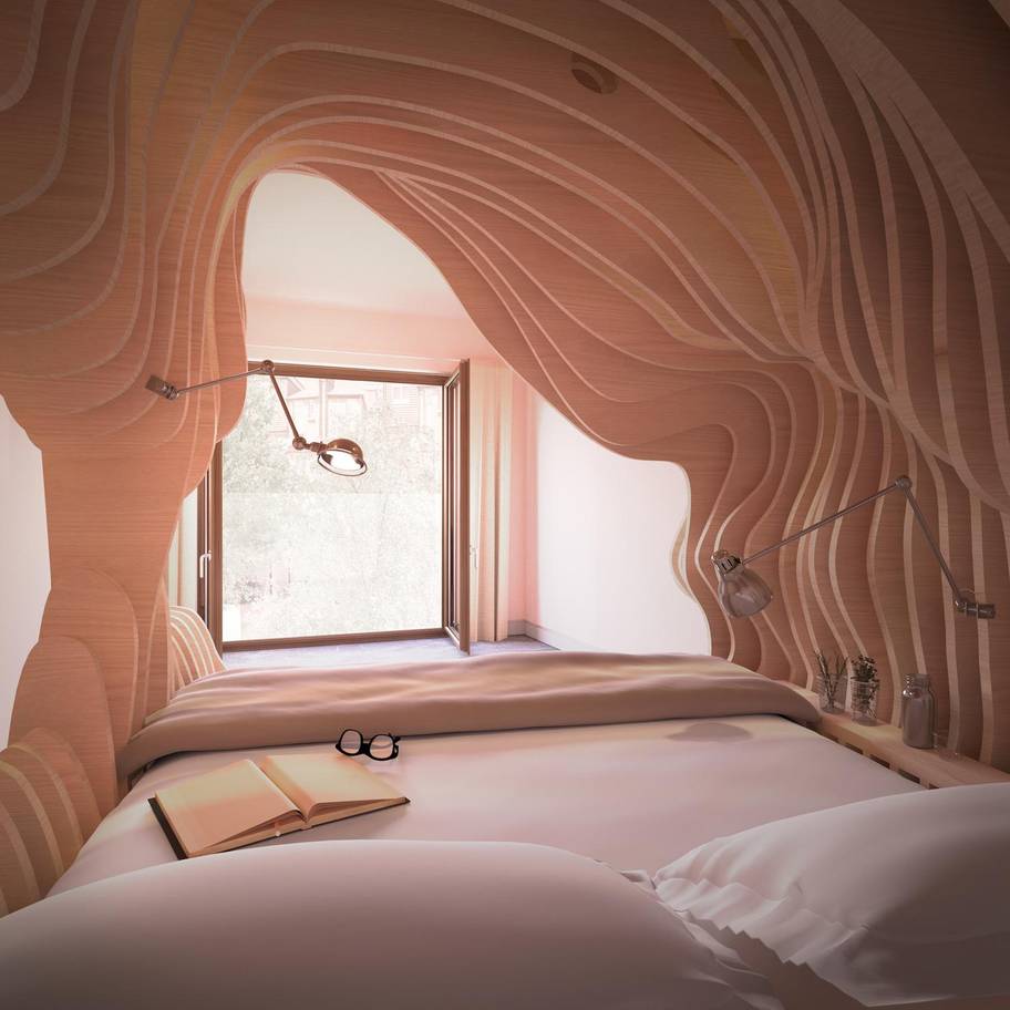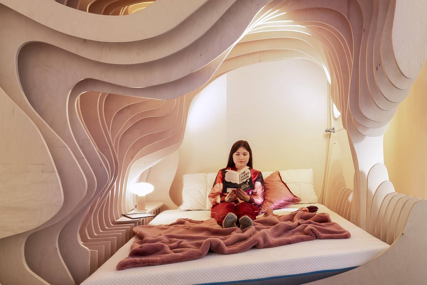 ▼「The Zed Rooms」內,燈光格外柔和,床也很獨特,採用了粉嫩的桃色。躺在床上時,有一種回到母體的感覺。房間裡有幫助人放鬆心情的氣味,整體設計溫暖簡潔,非常療癒。