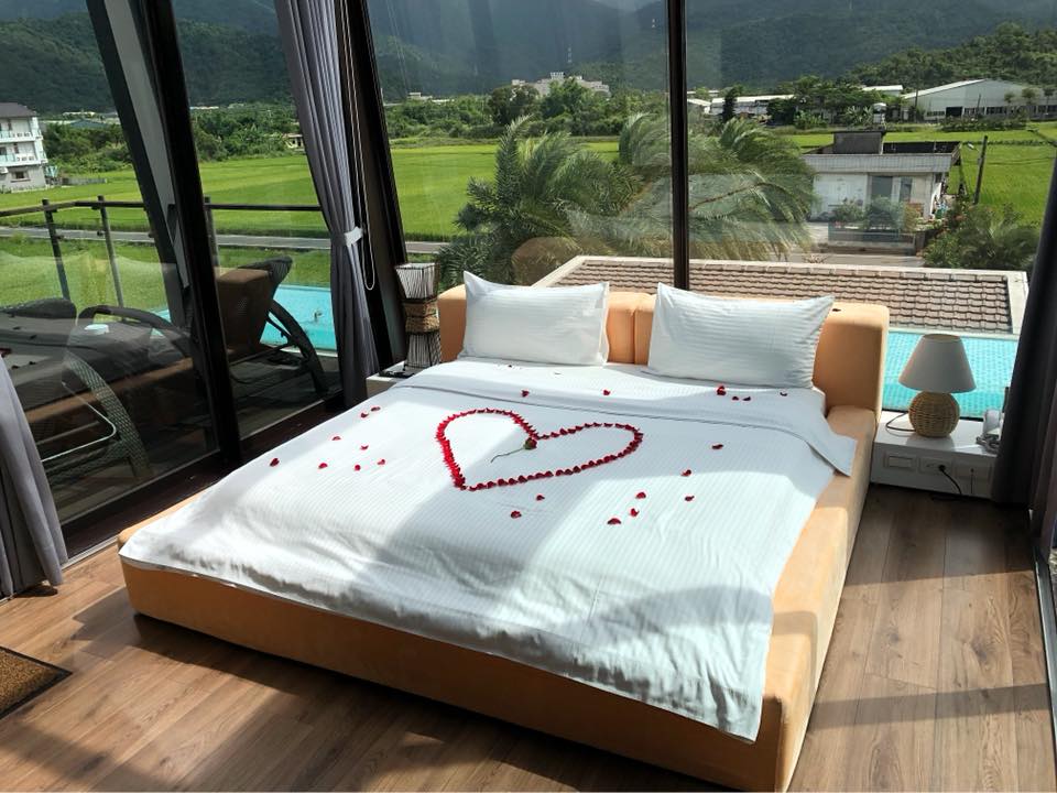 這間民宿在冬山鄉可是非常知名的,房間採用了大量的透明玻璃打造,打開窗簾就能看到壯麗的景色,到了晚上也能仰望星空,實在是非常夢幻的地方!