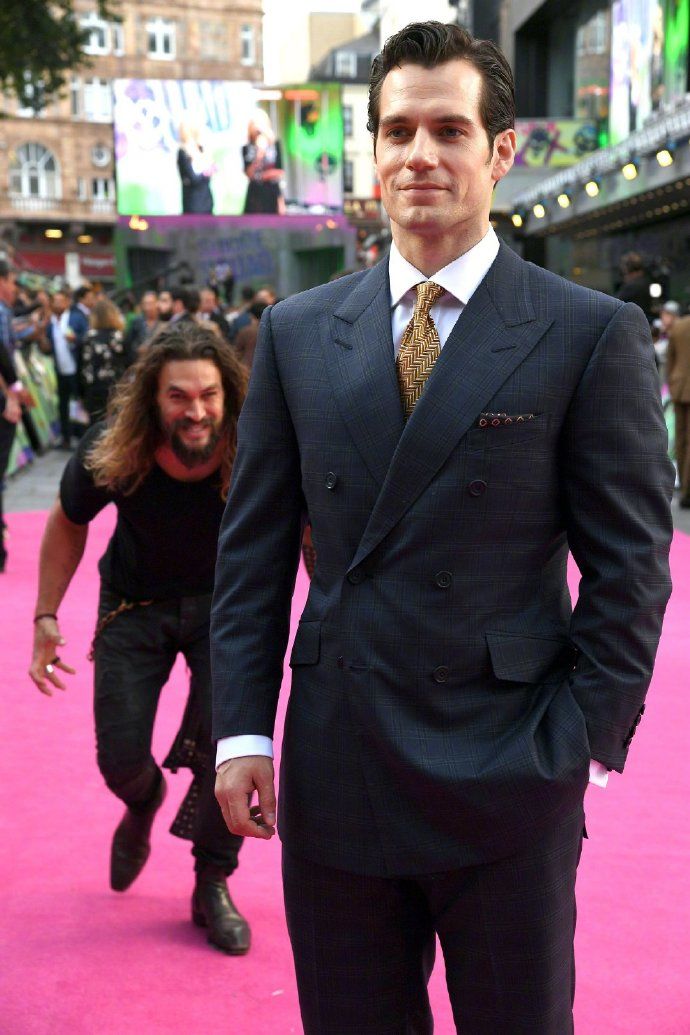 ▼在《自殺突擊隊》的首映式上,他還偷襲超人亨利卡維爾(Henry Cavill)。在鏡頭前超注重形象的亨利卡維爾都忍不住笑了。