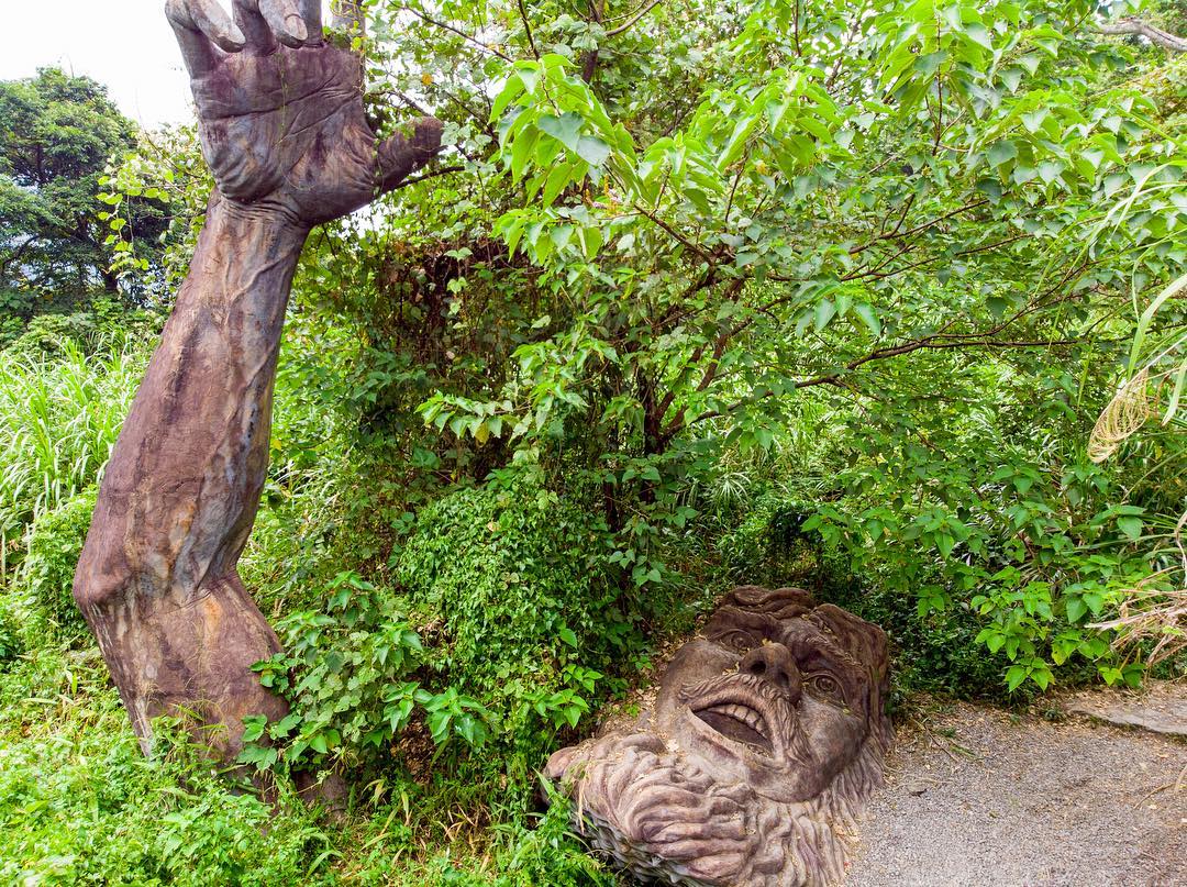 ▼位於台中和平區的深林中,半張長著長鬍鬚的粗獷男人臉、一隻向天空伸出的巨手,突兀地在樹叢間、碎石路上冒出。