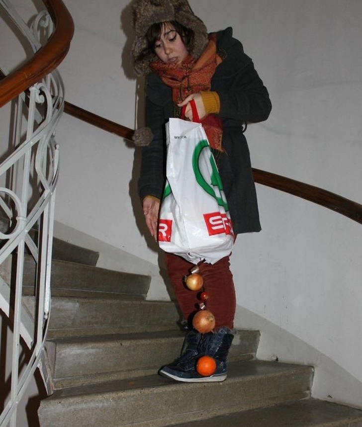 ▼等水果蔬菜掉光光,她才反應過來袋子破了。