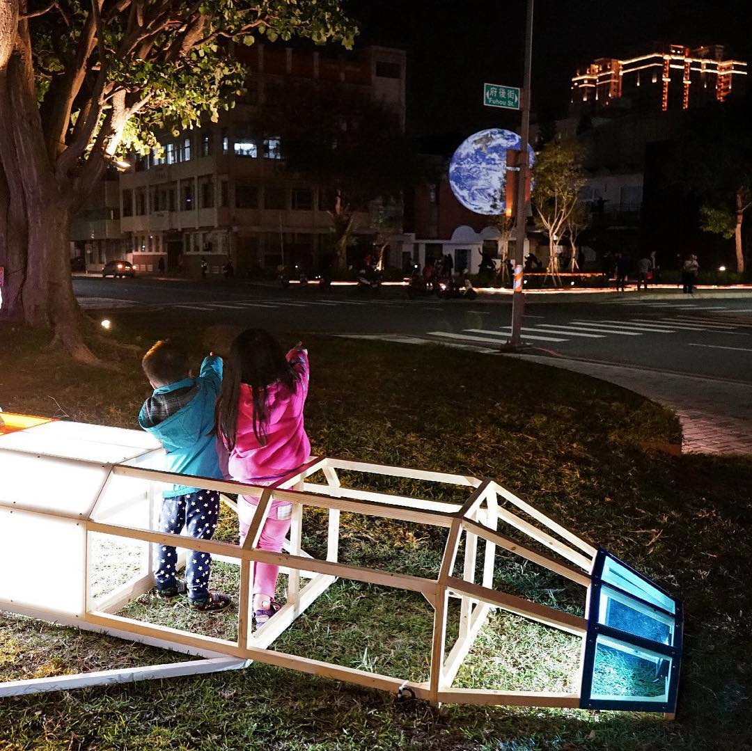 ▼除了漂浮地球,新竹市政府也在護城河沿線打造了六件藝術裝置,分別有月球人、小豬太空人和太空梭。
