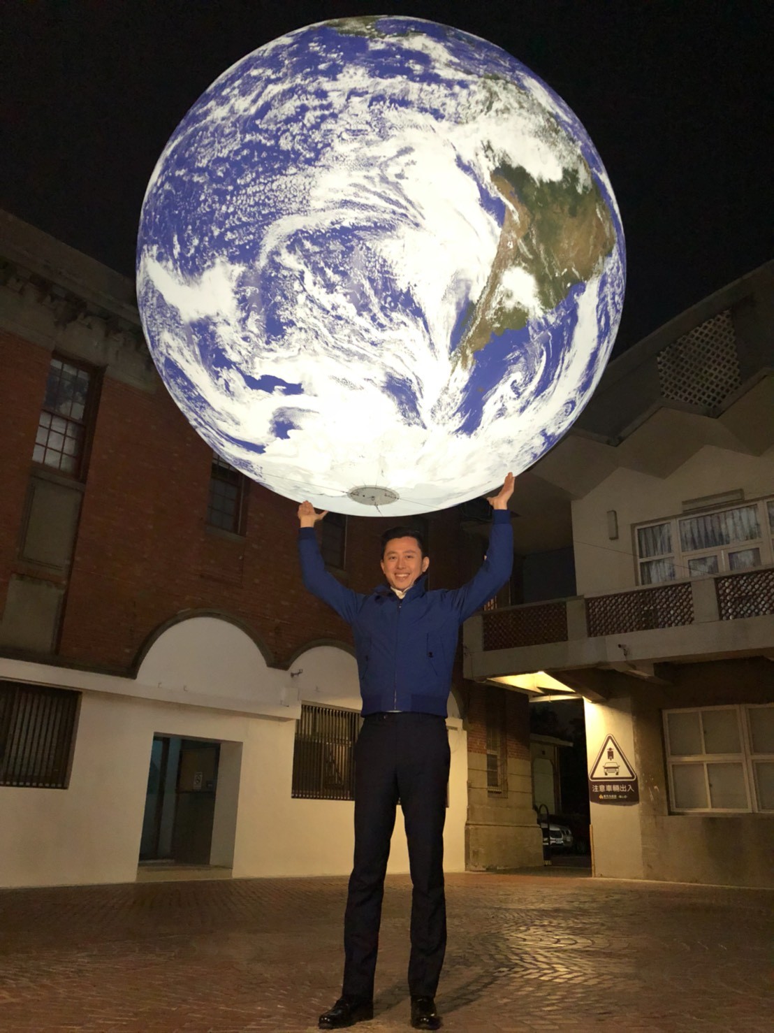 ▼英國藝術家路克傑朗姆創作的漂浮地球名為《蓋亞》,意思也就是地球。根據資料,這個裝置大小是真實地球的180萬分之一,印有NASA授權的地球表面圖像。市長林智堅也特別來拍照打卡。