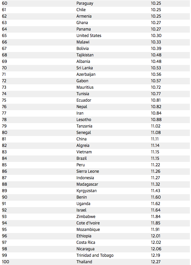 ▼但是經濟大國如日本和美國,排名卻只有第43和第65。日本是因為自然災害的風險增加,美國則是犯罪問題一直沒有獲得改善。