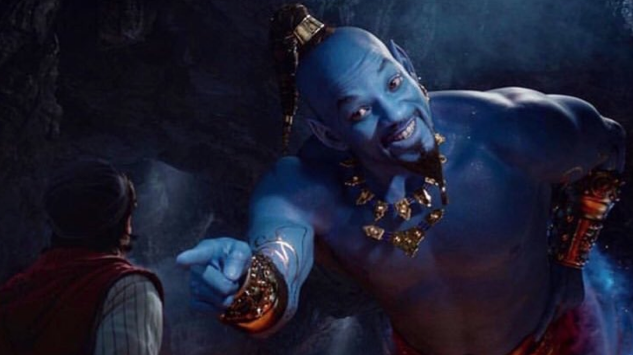 ▼在經典的《阿拉丁》動畫中,藍色的神燈精靈給人留下了深刻的印象。網友們知道這一角色由威爾史密斯出演時非常期待。不過首波劇照釋出時,威爾史密斯竟然不是藍色的,這讓不少人失望不已。