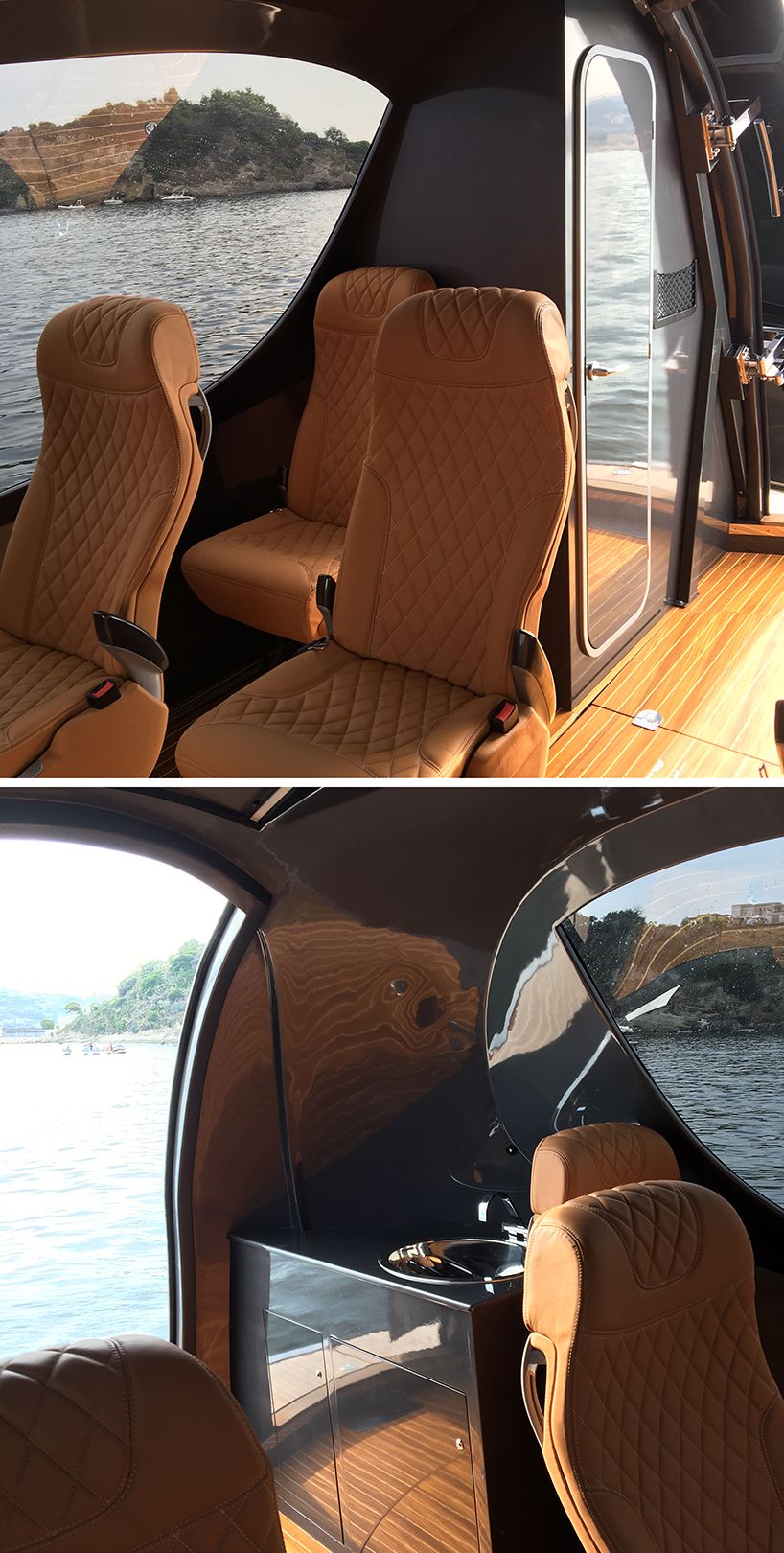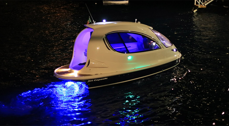擁有一台遊艇已經是有錢人的基本配備,但事實上一台遊艇需要大量資金來維修保養。義大利著名的fiart mare造船廠設計這款「jet capsule」私人膠囊噴氣遊艇,不要看他外型小小的,裡面可是五臟俱全呢!設計者從2010年開始研發,每一年都會研發出新的設計,而今年這款最新的「royal version 001」裡面的設計更豪華、更有科技感,讓你體驗奢華的海上時光。
