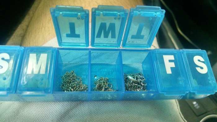 ▼3.出門玩總得妝扮得漂漂亮亮,但各種項鍊、飾品放一起老是纏住怎麼辦?拿個藥盒來分裝就好!