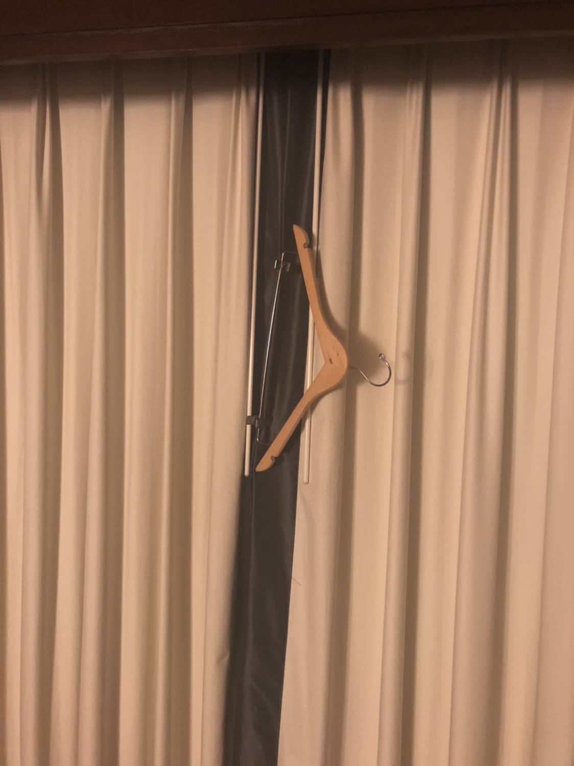 ▼15.窗簾沒辦法拉好拉滿的時候,衣櫃裡帶夾子的衣架就會派上用場。