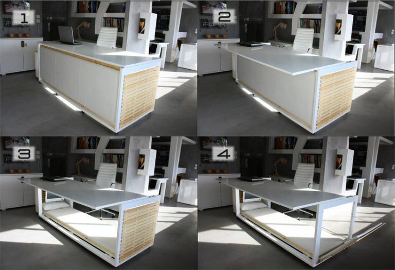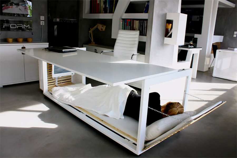 希臘一位設計師南西(Nancy Leivaditou)在紐約唸書、工作時,因為租屋處的空間狹窄,突發奇想把辦公桌和床結合在一起。這樣的設計除了節省空間之外,也能讓長時間加班、甚至需要睡在公司的上班族不怕找不到休息的地方。