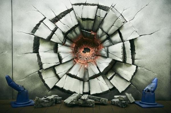 ▼接下來這個洞,猜的出來是誰嗎?深深烙在上面的拳頭,沒錯!就是《ONE PIECE》的船長大大魯夫所使出的「橡膠火拳槍」。