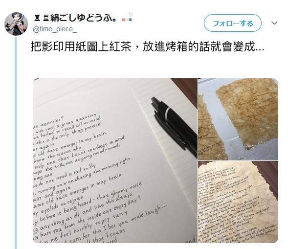 ▼有位日本網友發明出製造老舊風格的紙張,只要三步驟就能完成!