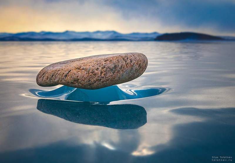 2019年02月25日看到這照片,第一個反應可能是「這是合成的吧?」、「打水漂的瞬間照片?」,其實都不是,這是在俄羅斯湖貝加爾湖的奇特異象,被稱為「Baikal Dzen」也就是「瞬間凍結的石頭」,特別的氣候加上陽光照射,形成了這獨特的自然奇景。
