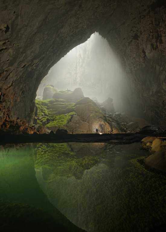 ▼在韓松洞形成於200萬年~500萬年前,因流水侵蝕地底的石灰岩,導致山中頂部石塊塌陷,因而形成了這巨大的內部空間,偶時會有仰光映入洞穴,進入洞穴的探險者們便有幸目睹這複雜的內部結構。