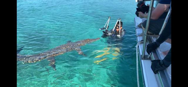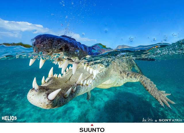 ▼吳永森還曾經遠赴古巴的女王花園群島拍攝鹹水鱷,在水中和鹹水鱷近距離拍攝,最重要的是「他全身沒有防護措施」。簡直是用生命在拍照啊!