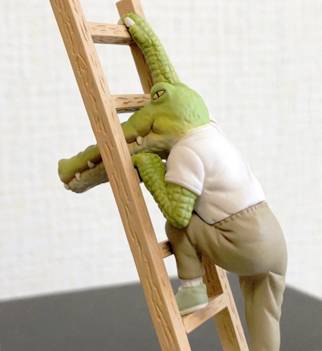 ▼近日Keigo在IG發文表示,他的作品即將在6月推出系列扭蛋,由TAKARA TOMY A.R.T.S所發行,預計推出6款,在貼文也率先曝光其中一款扭蛋,正是一隻鱷魚爬梯子的樣子,因為鱷魚的嘴巴太長而卡在梯子裡動彈不得。