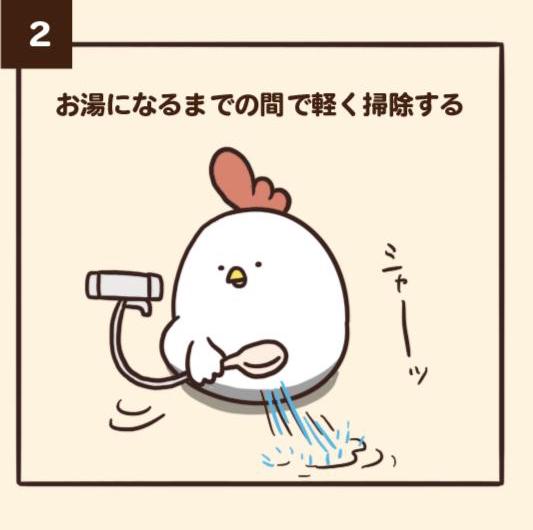 ▼2.「等水熱的時候先稍微沖洗一下廁所。」