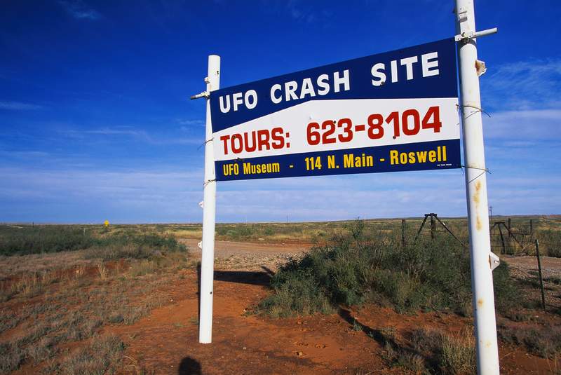 ▼美國新墨西哥州「羅斯威爾」:因飛碟墜毀事件而走紅的城鎮。可以在「UFO嘉年華」的時候來,會有許多外星人的東西。除此之外就沒什麼值得來了,因為實在是太小了!但你可以去附近的「卡爾斯巴德洞窟國家公園」獨特的地質洞穴,絕對比羅斯威爾鎮更值得去!