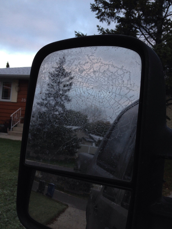 ▼蜘蛛網都結冰了。