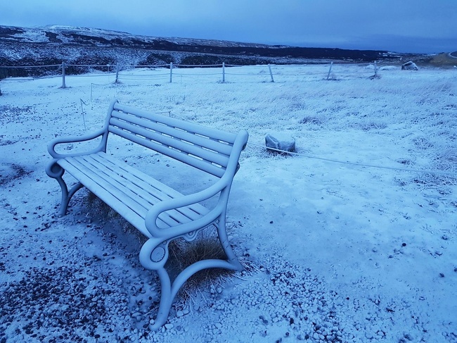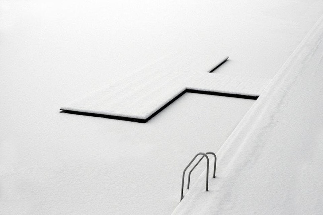 ▼湖面結冰,然後落了厚厚的雪。