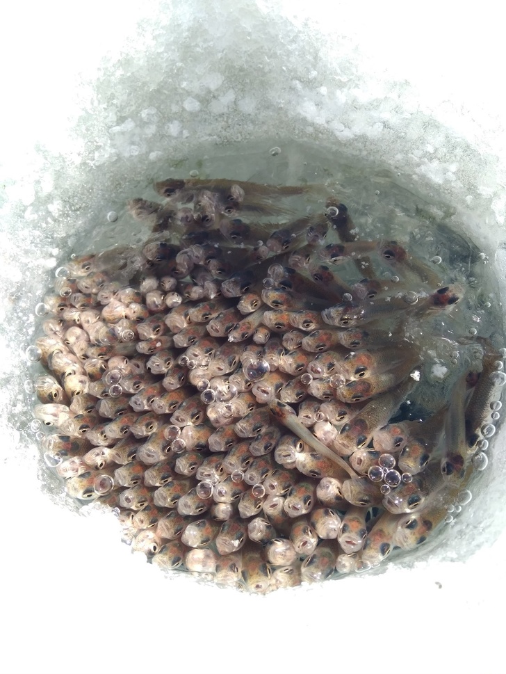 ▼冰下的小魚都缺氧了。