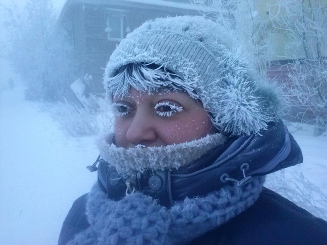 ▼這就是西伯利亞人冬日的妝容,眼睫毛全都結冰了。