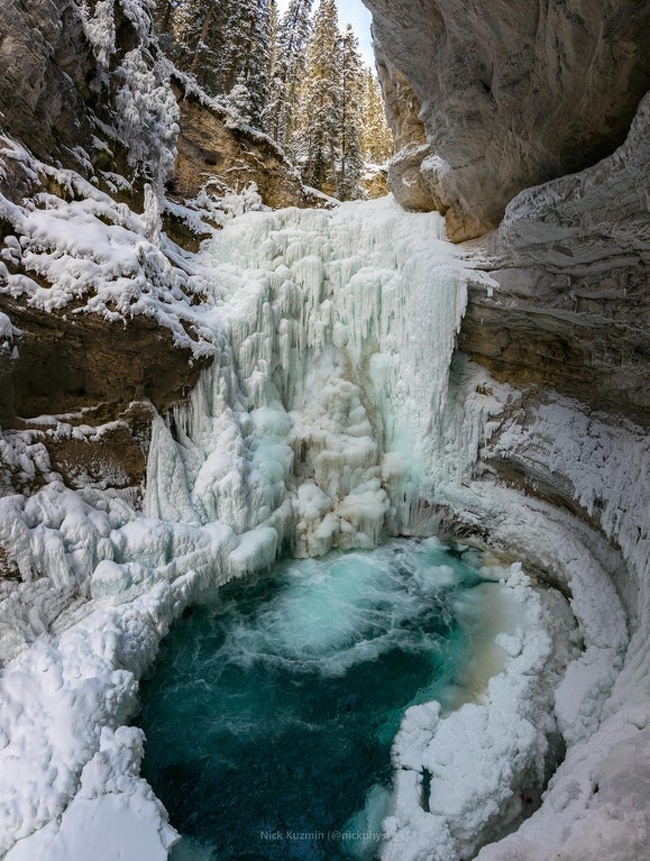 ▼加拿大班夫國家公園中的瀑布冰凍了。