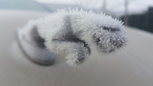▼這是Jaguar引擎蓋上的車標,結滿冰花。