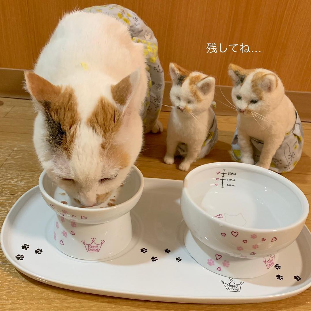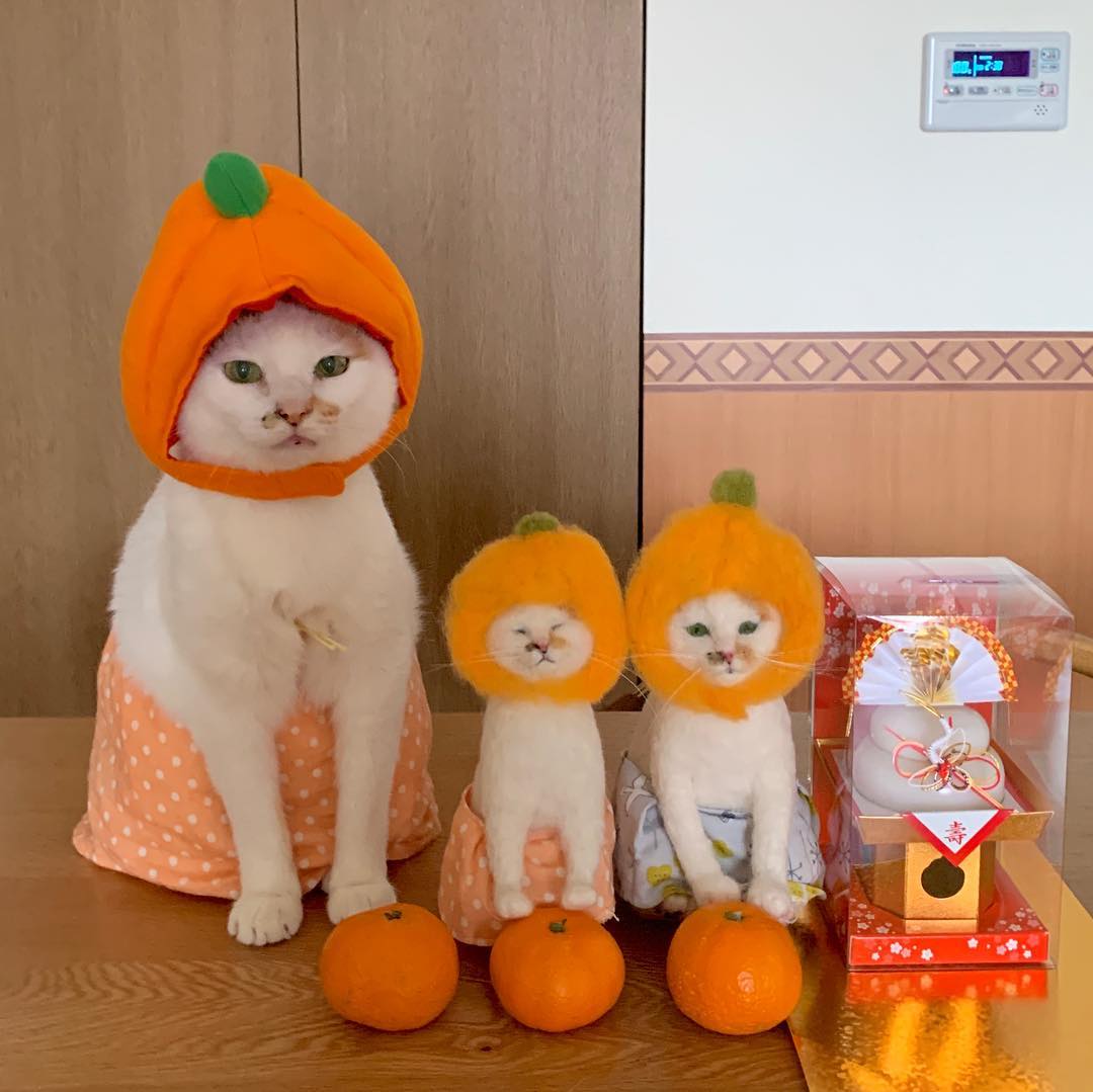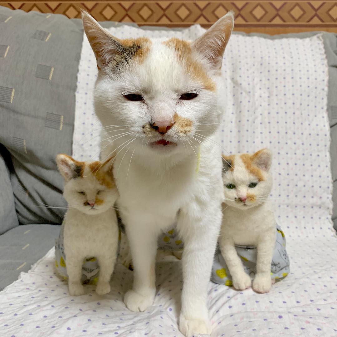 ▼其實那兩隻小貓咪是用羊毛氈做的。主人很愛Maru,又有一雙巧手,就以牠為範本,做了一隻和牠一模一樣的羊毛氈玩偶。