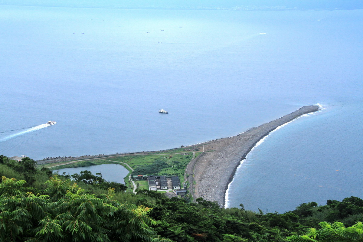 ▼往後一看就能看到「龜尾」啦~長長的尾巴將海劃分為兩種顏色。在制高點享受海風吹拂,望著蔚藍的海岸,剛剛爬階梯的疲倦都消失了!