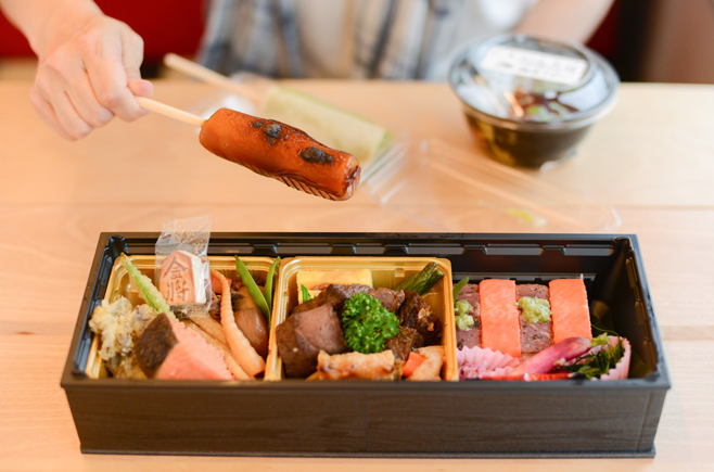 ▼若購買JR旅行社的套裝行程,還會提供便當及飲品;飲品有果汁、茶、紅白酒等,而便當都是用山形市當地的食材製成的。