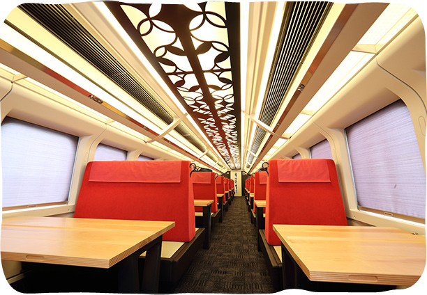 ▼車內座位設計成適合飲食、談天,坐起來十分舒適。