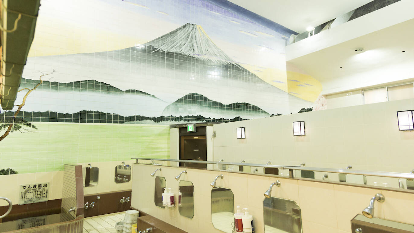 ▼一邊泡澡一邊抬頭欣賞牆上巨大的富士山壁畫,是許多淺草人的共同回憶。