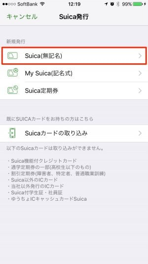 ▼3.選擇卡片種類,通常外國遊客就是選擇「Suica(無記名)」。