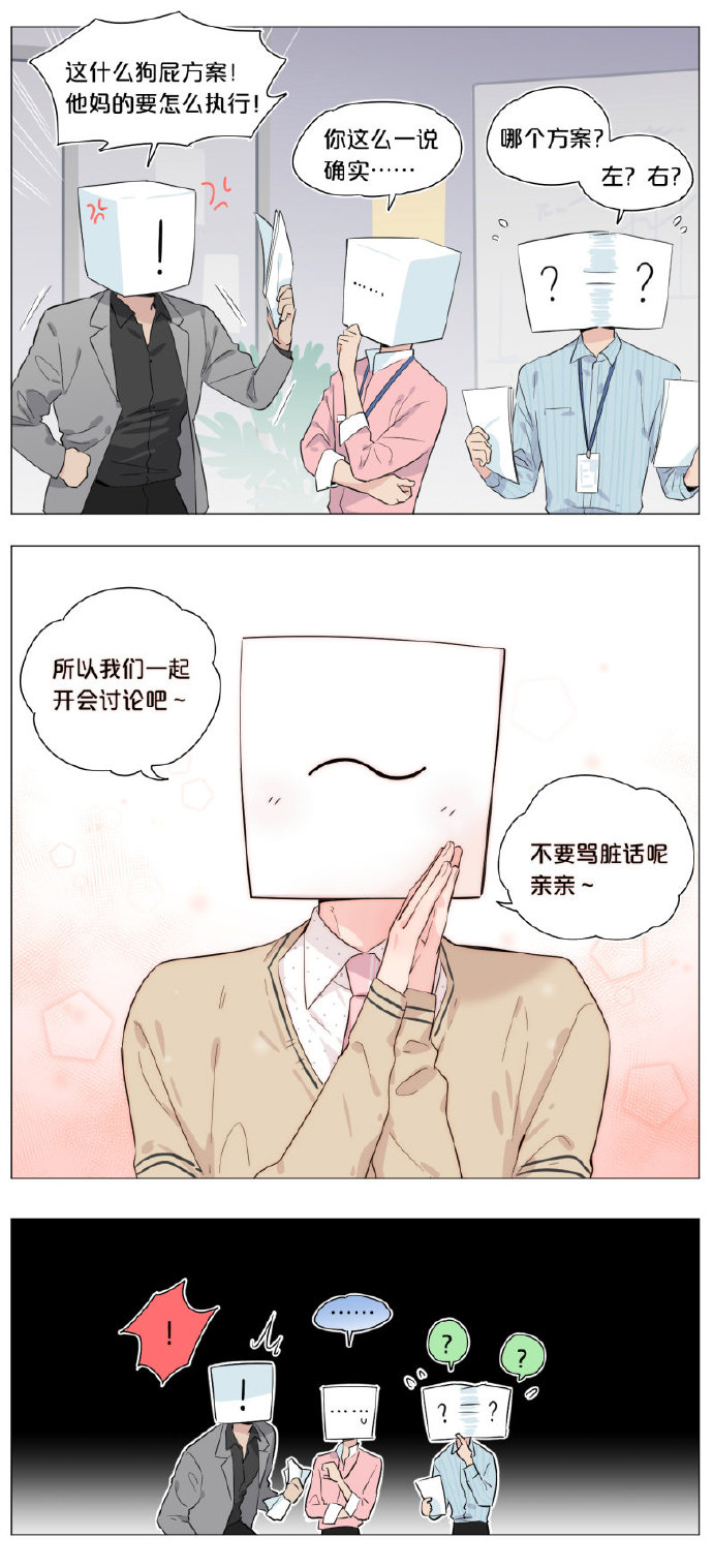 ▼2.「!」脾氣暴躁,對工作很嚴格;「……」態度中庸,非常圓滑;「?」則是公司裡的菜鳥,總是搞不清楚狀況。「~」最擅長以柔克剛,一句話就成功滅火啦。
