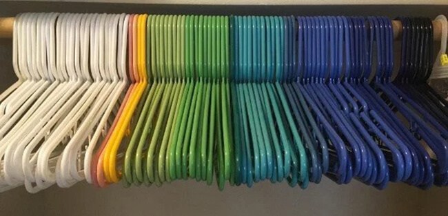▼將不同顏色的曬衣架依照顏色排列。