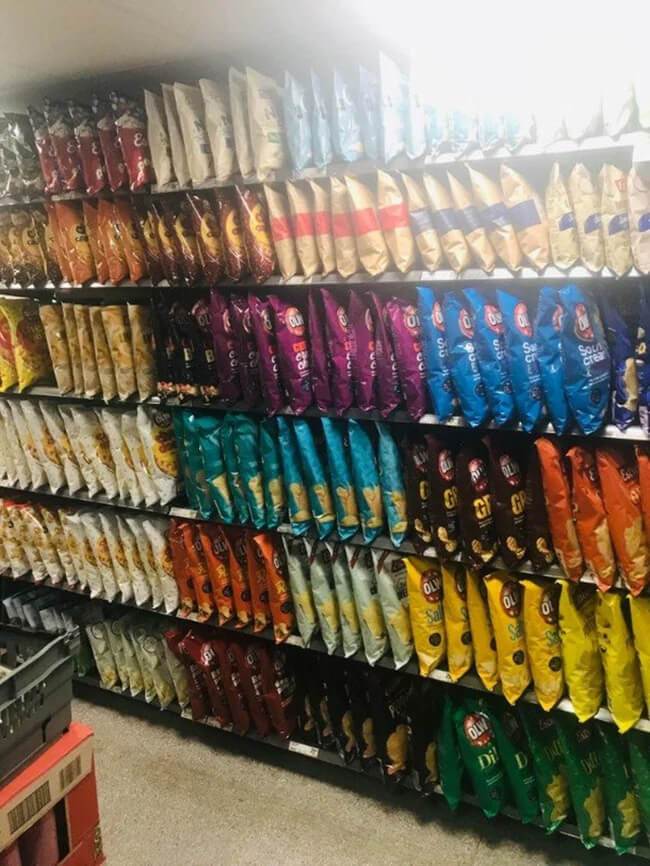 ▼令人不捨得購買的「洋芋片牆」。