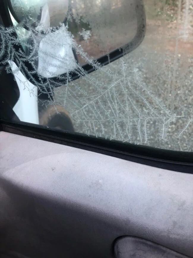 ▼車窗外的雪花儼然就是蜘蛛網的形狀!