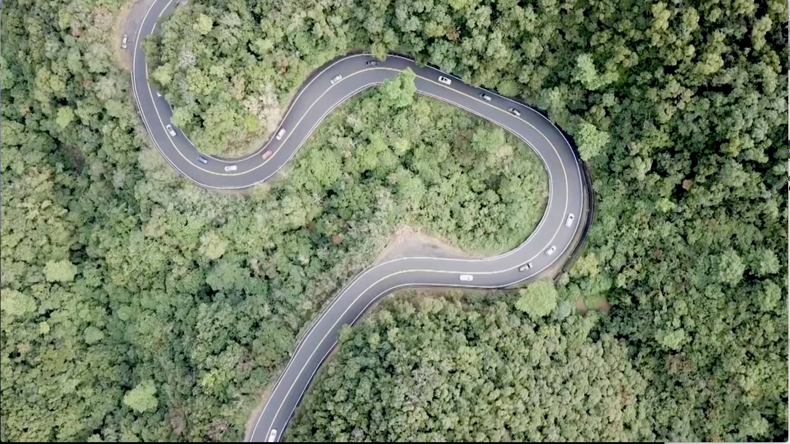 ▼1.S型彎道:蜿蜒曲折的公路,在林中開闢出一條蹊徑。