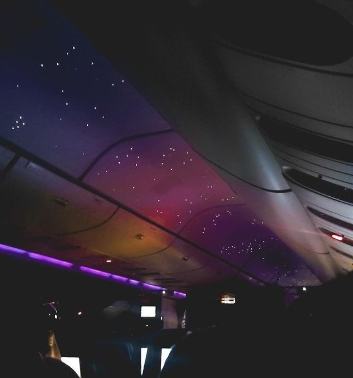 ▼5.飛機艙頂部的深邃星空,夜晚在半空中仰望星空的感覺太浪漫了。