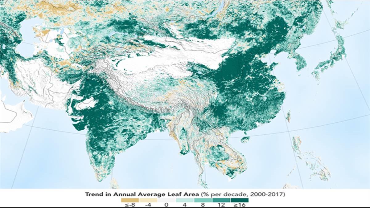 ▼近年來全球各地環保意識提高,觀念漸入人心,美國太空總署NASA的最新研究數據公布,現在地球相對於20年前,變得更綠了。
