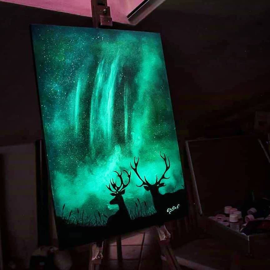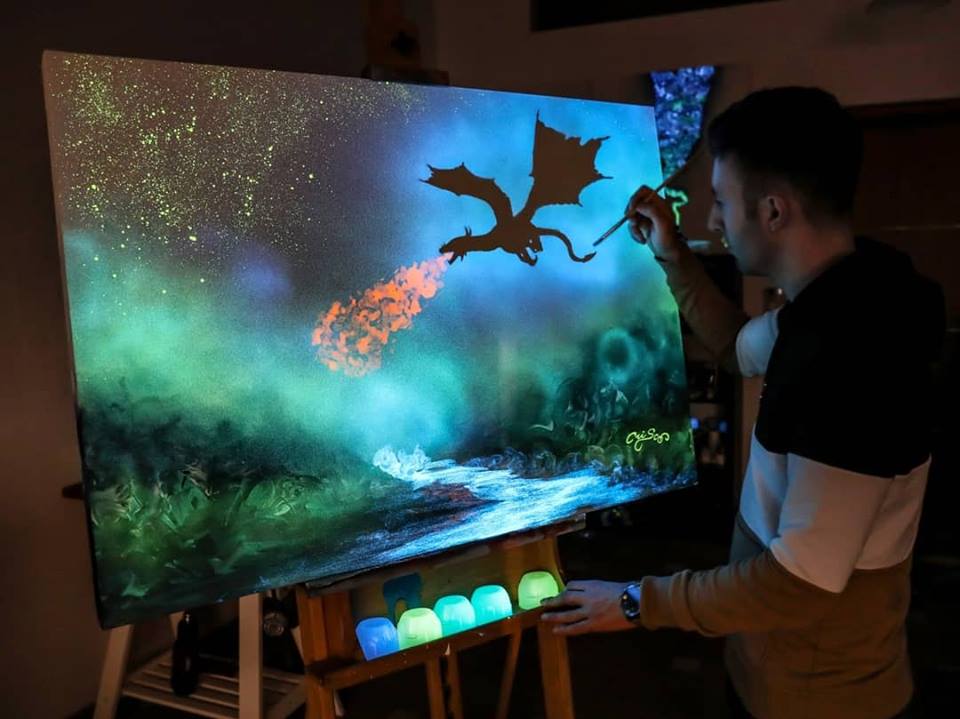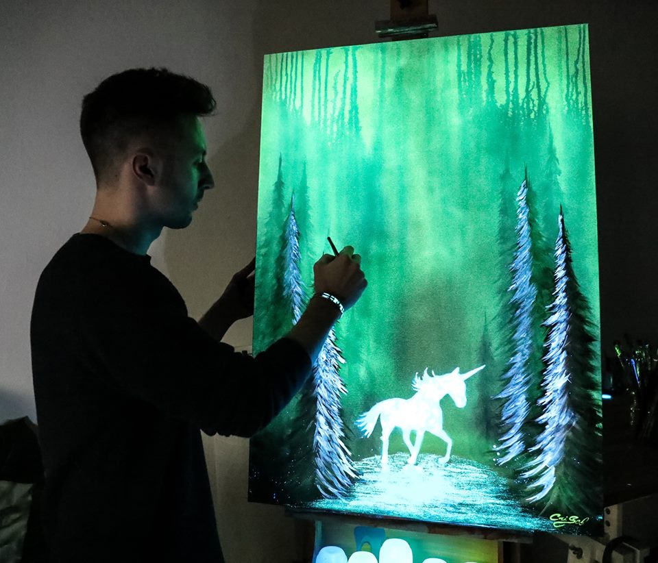 2019年03月13日義大利藝術家Cristoforo Scorpiniti擅長用螢光顏料作畫,他將螢光劑調配上顏料創作出一幅幅美麗的畫作,在日光下它們是精妙的繪畫,而一到夜晚,螢光畫作如夢如幻的氛圍更加驚艷動人。