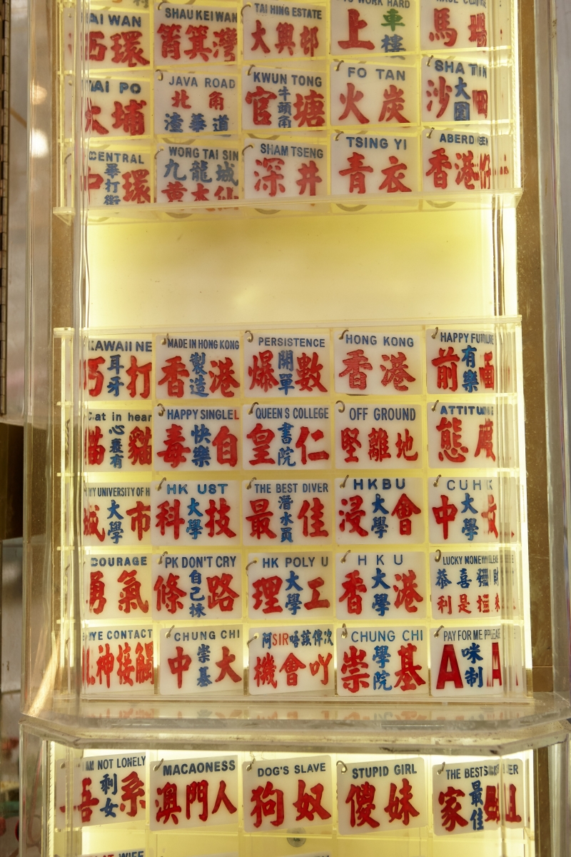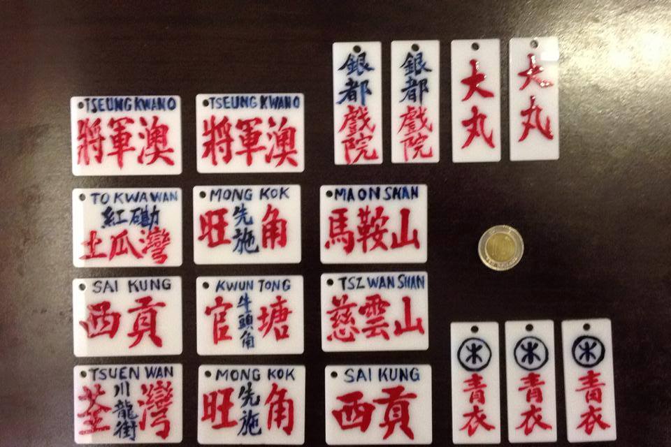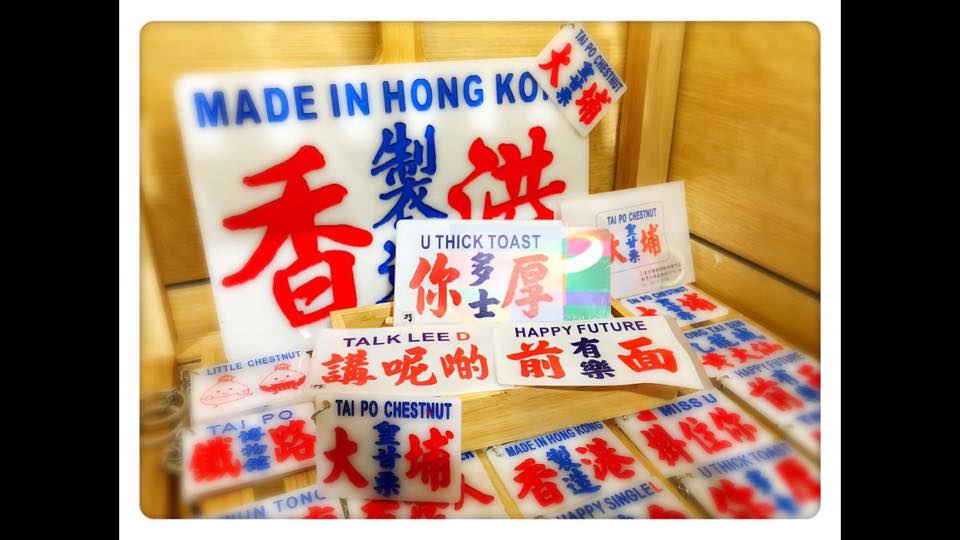 ▼現代的「水牌」除了供小巴使用的地名之外,還有許多幽默有趣的流行用語,麥錦生也提供客製化預定的服務,讓旅客可以買到帶有濃厚香港味道的紀念品。