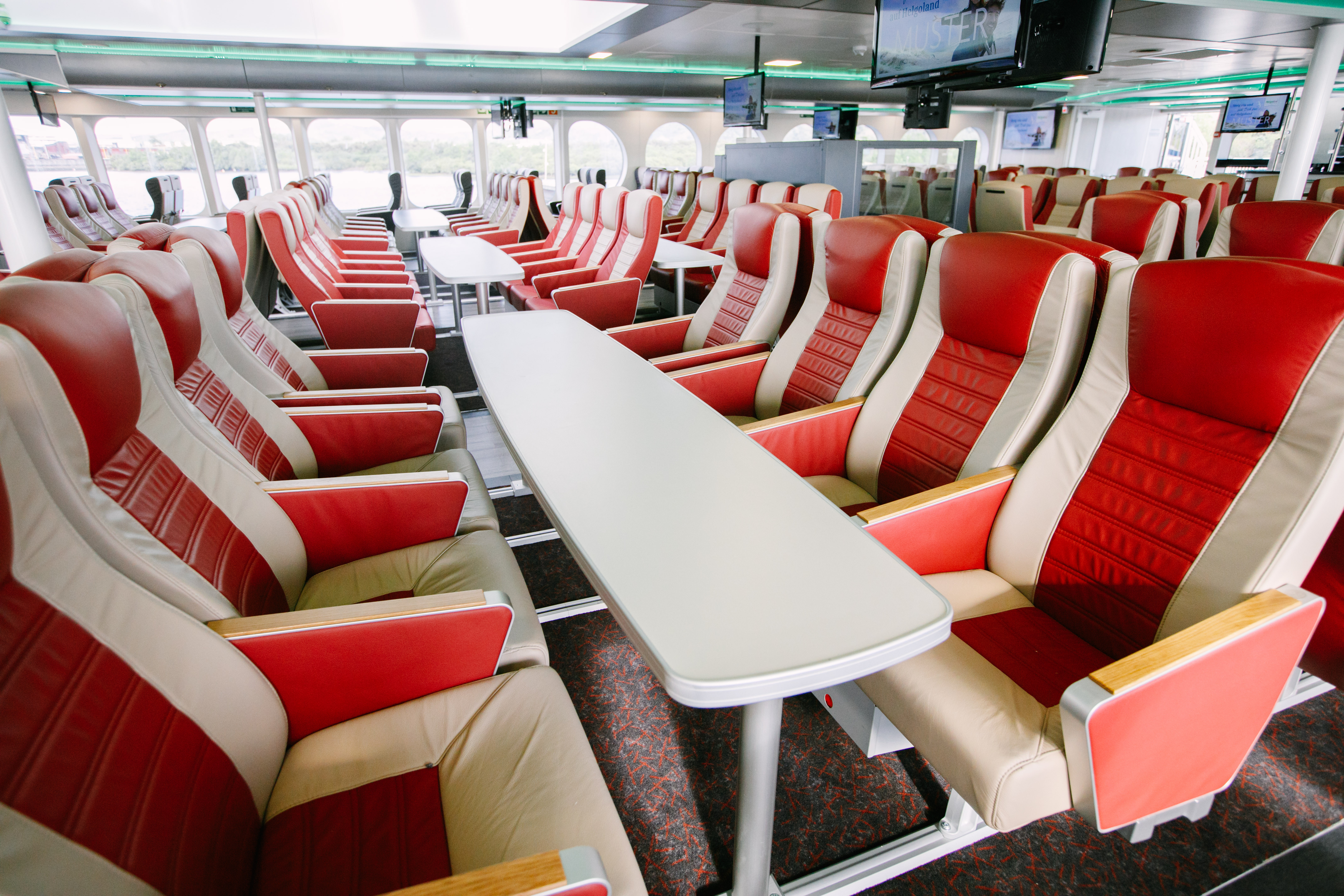 ▼以台灣國寶命名的「雲豹輪」載客數多達552人,船速最高時速70公里,而且主打不會暈船!根據百麗航運的說法,那是因為客輪配有水下平衡系統,可以把船操控得很平穩,浪打到3.5米都沒感覺!如果你是因為會暈船而有恐懼的人,請放心坐起來吧!