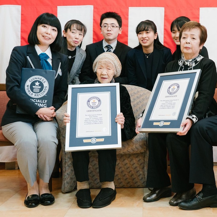 ▼這名老婦人叫做田中加子(Kane Tanaka),她在2019年3月9日被認證為全球最長壽人士,《金氏世界紀錄》的職員為此到福岡的安養院頒發證書給她,而田中的家人及市長也都到場祝賀。