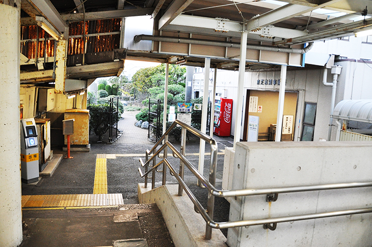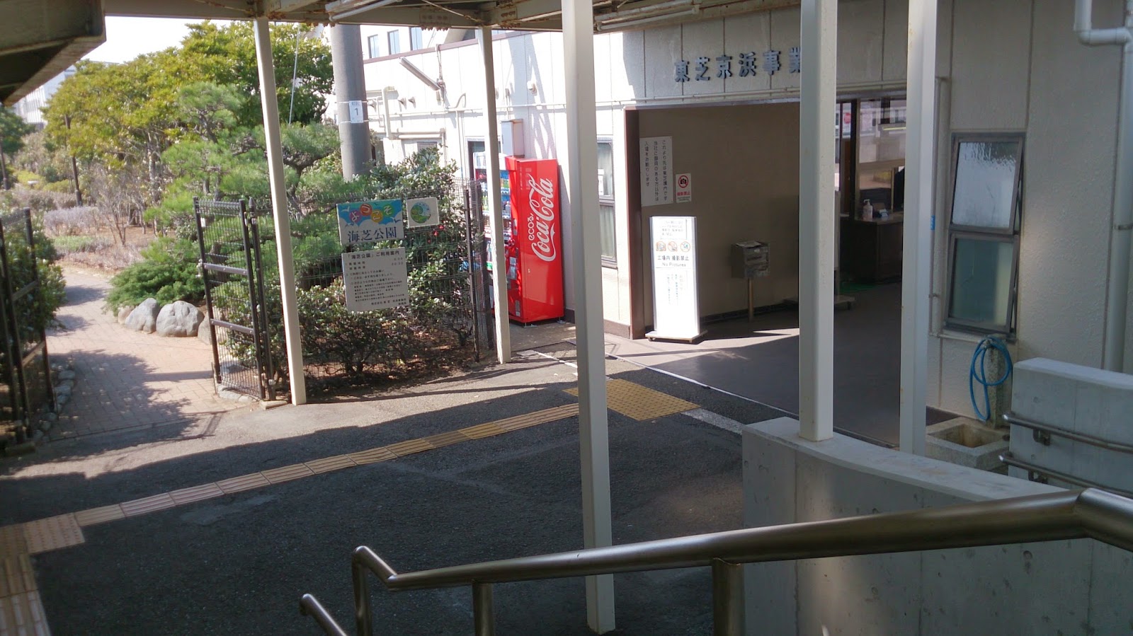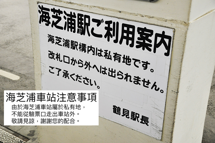▼海芝浦車站仍設有驗票口,形式上算是可以出站;但因為出口就是東芝的私有地入口,平時有警衛顧守,非員工不能進入,因此就算驗完票還是會被攔下來。