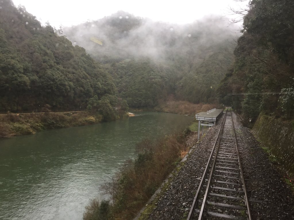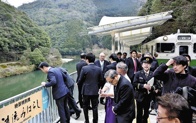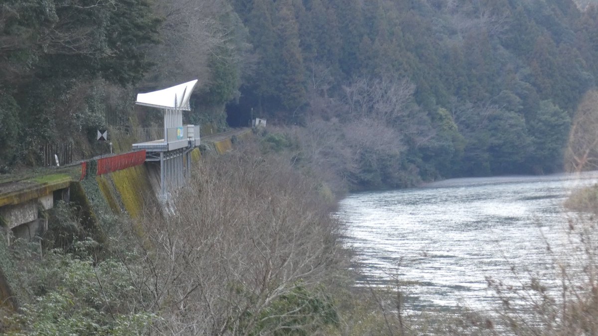 ▼原來這座車站位於山手縣的錦川鐵道,名叫「清流瞭望車站(清流みはらし駅)」;專門設計來欣賞峽谷清流美景,為了觀光而開闢的車站。