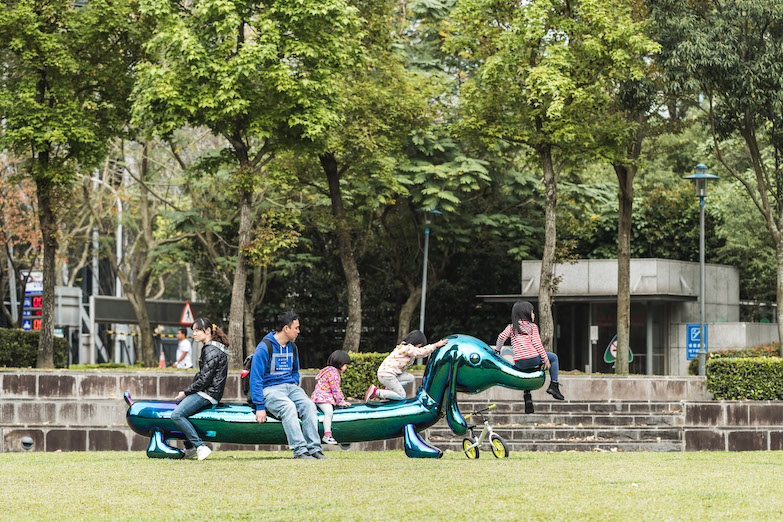 一系列大型雕塑,就坐落於松壽廣場周圍,Jeppe Hein以公園裡隨處可見的長椅作為發想,改造他們平淡無奇的造型,為「坐」這個動作創造不同的意涵與體驗,藝術家除了邀請大家與作品零距離互動之外,也希望藉此能拉近陌生人之間的距離,鼓勵現代人在公共空間可以進行更多的體驗與交流。
