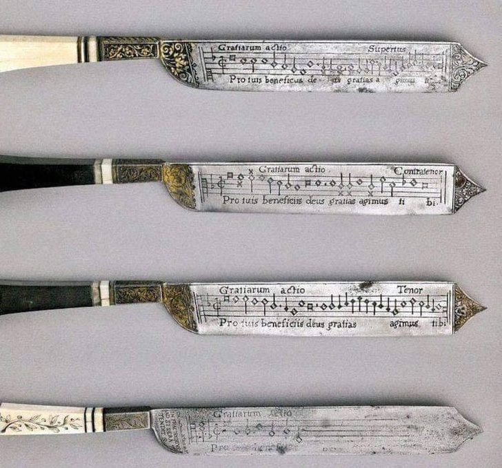 ▼4.這套16世紀的刀具上刻著樂譜,客人用餐後還可以唱歌。