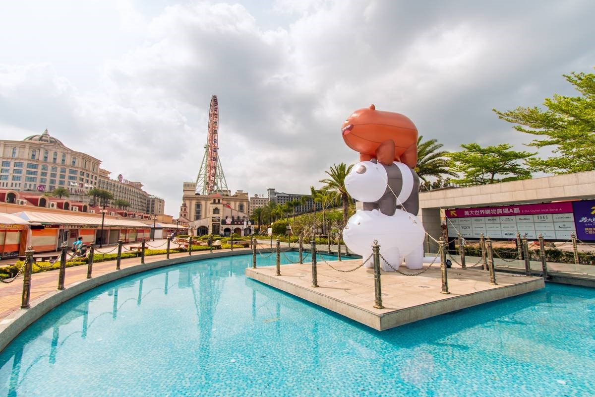 ▼義大世界與CN卡通頻道合作,超萌的卡通明星「熊熊遇見你」主角們出現在大草皮,三個熊熊分別是大大、胖達與阿極,角色設定超療癒又無厘頭,搞笑幽默的模樣可說是受人喜愛~